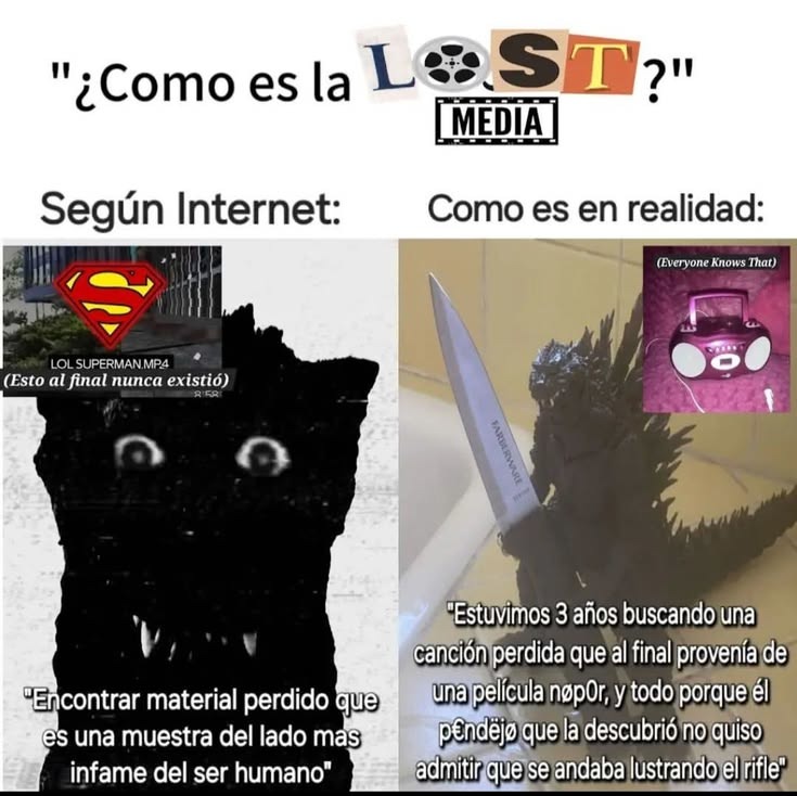 "¿Cómo es la LØST?" Según Internet: LOL SUPERMAN.MP4 (Esto al final nunca existió) "Encontrar material perdido que es una muestra del lado mas infame del ser humano" Como es en realidad: (Everyone Knows That) "Estuvimos 3 años buscando una canción perdida que al final provenía de una película nøp0r, y todo porque él péndèjø que la descubrió no quis