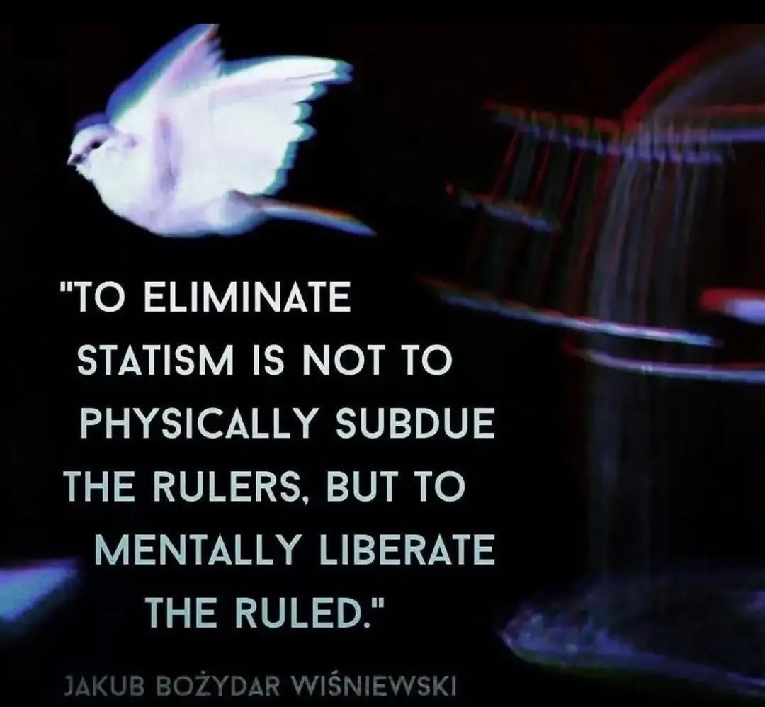 "TO ELIMINATE STATISM IS NOT TO PHYSICALLY SUBDUE THE RULERS, BUT TO MENTALLY LIBERATE THE RULED." JAKUB BOŻYDAR WIŚNIEWSKI
