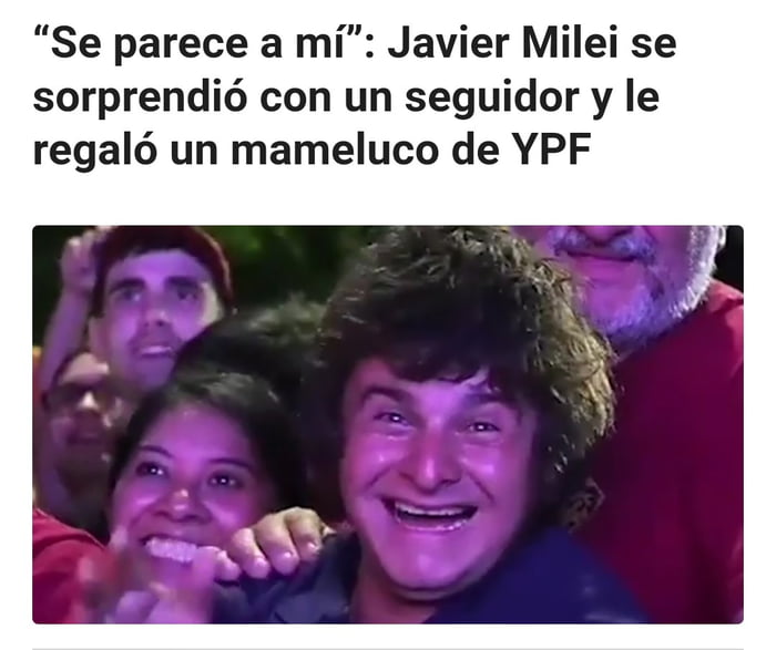 "Se parece a mí": Javier Milei se sorprendió con un seguidor y le regaló un mameluco de YPF