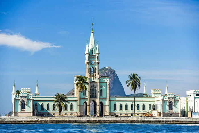 Museu do Ipiranga. Edifício histórico com arquitetura clássica, jardim bem cuidado com flores vermelhas, arbustos verdes e gramado, sob um céu azul claro.
