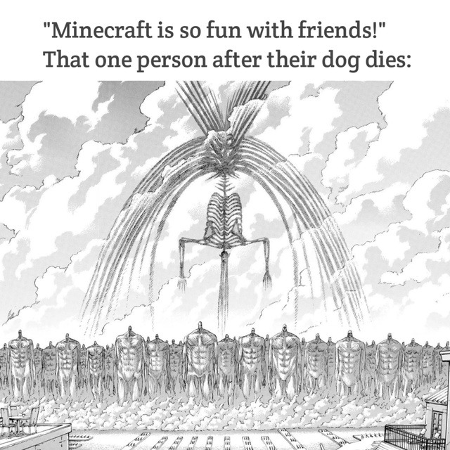 "Minecraft is so fun with friends!" That one person after their dog dies: