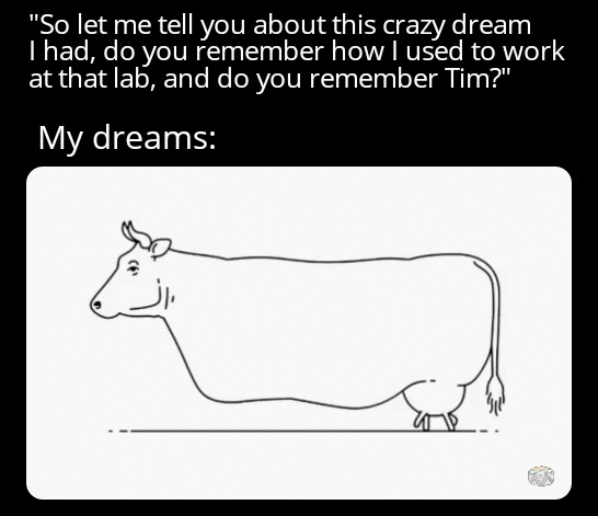 "So let me tell you about this crazy dream I had, do you remember how I used to work at that lab, and do you remember Tim?" My dreams:
