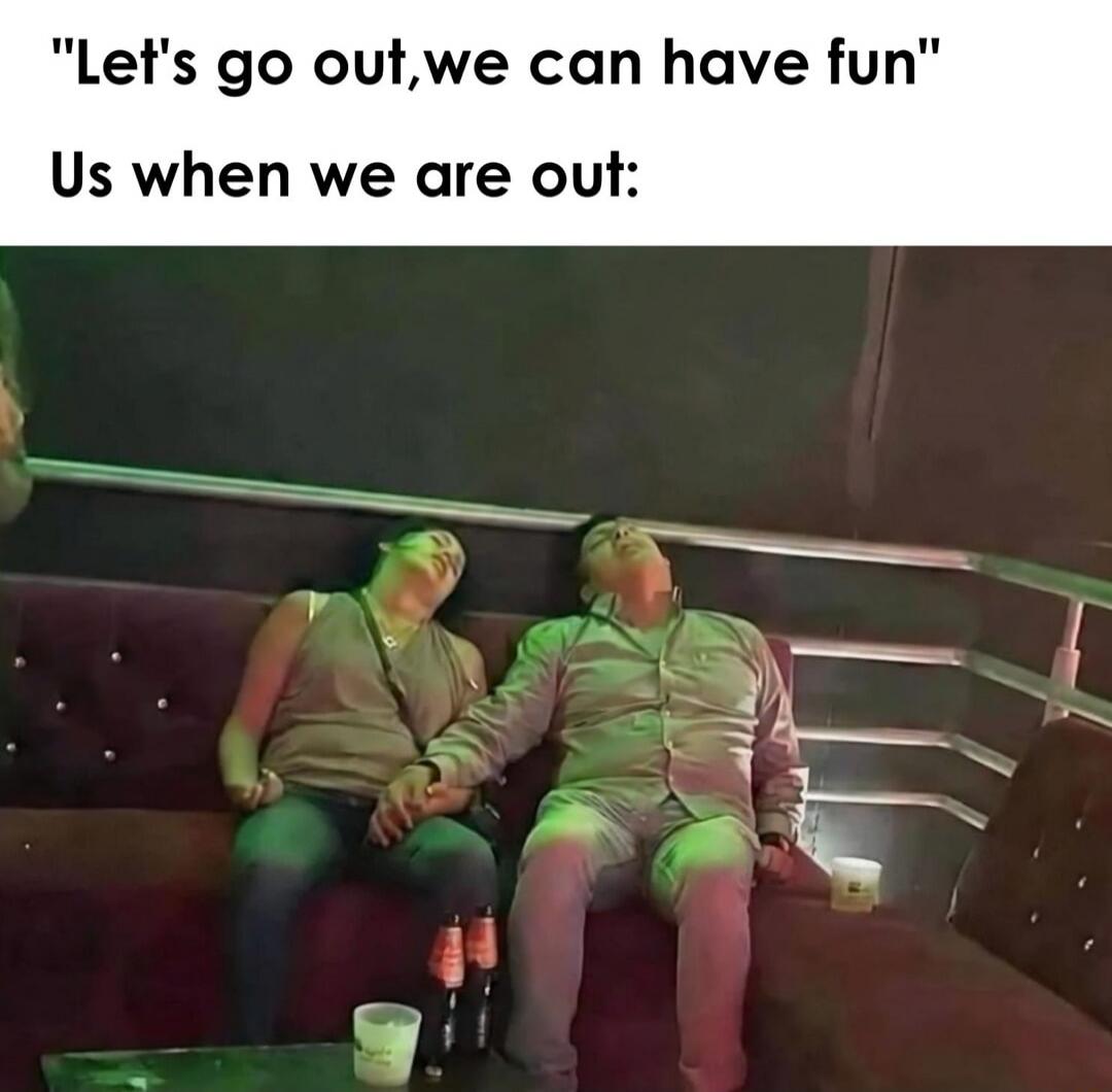 "Let's go out, we can have fun" Us when we are out:
