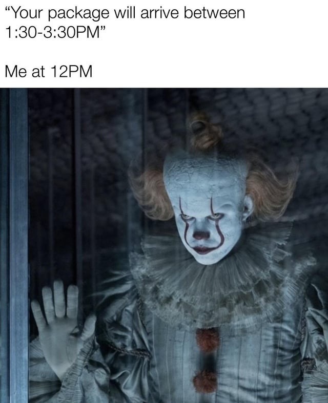 "Your package will arrive between 1:30-3:30PM" Me at 12PM