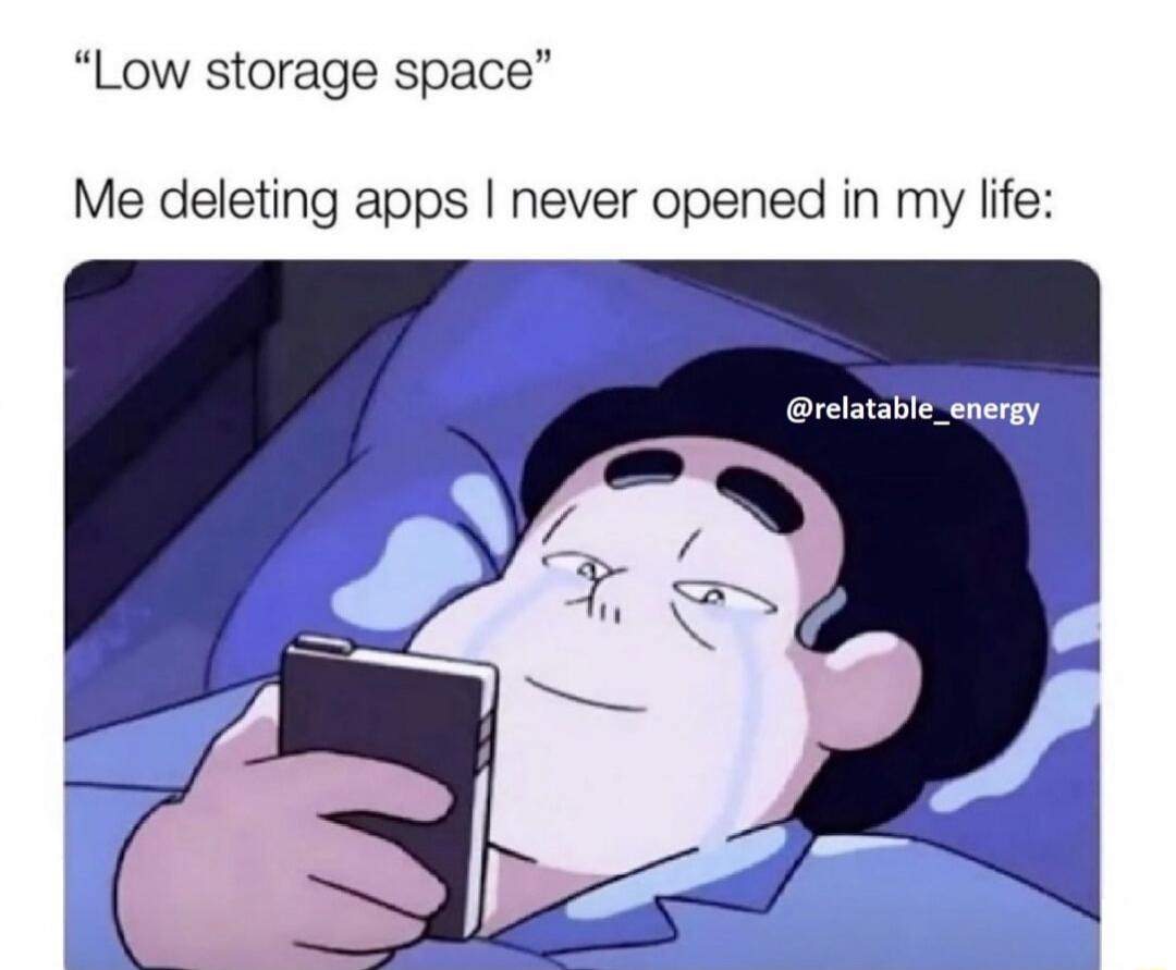 "Low storage space" Me deleting apps I never opened in my life: