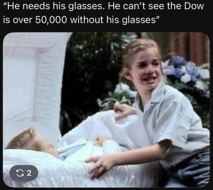"He needs his glasses. He can't see the Dow is over 50,000 without his glasses"