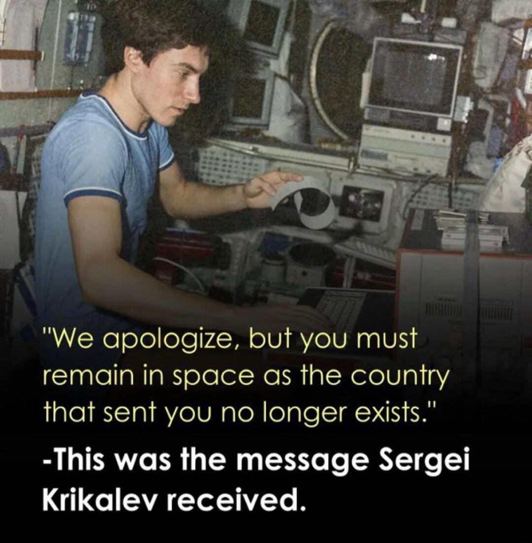"We apologize, but you must remain in space as the country that sent you no longer exists." -This was the message Sergei Krikalev received.