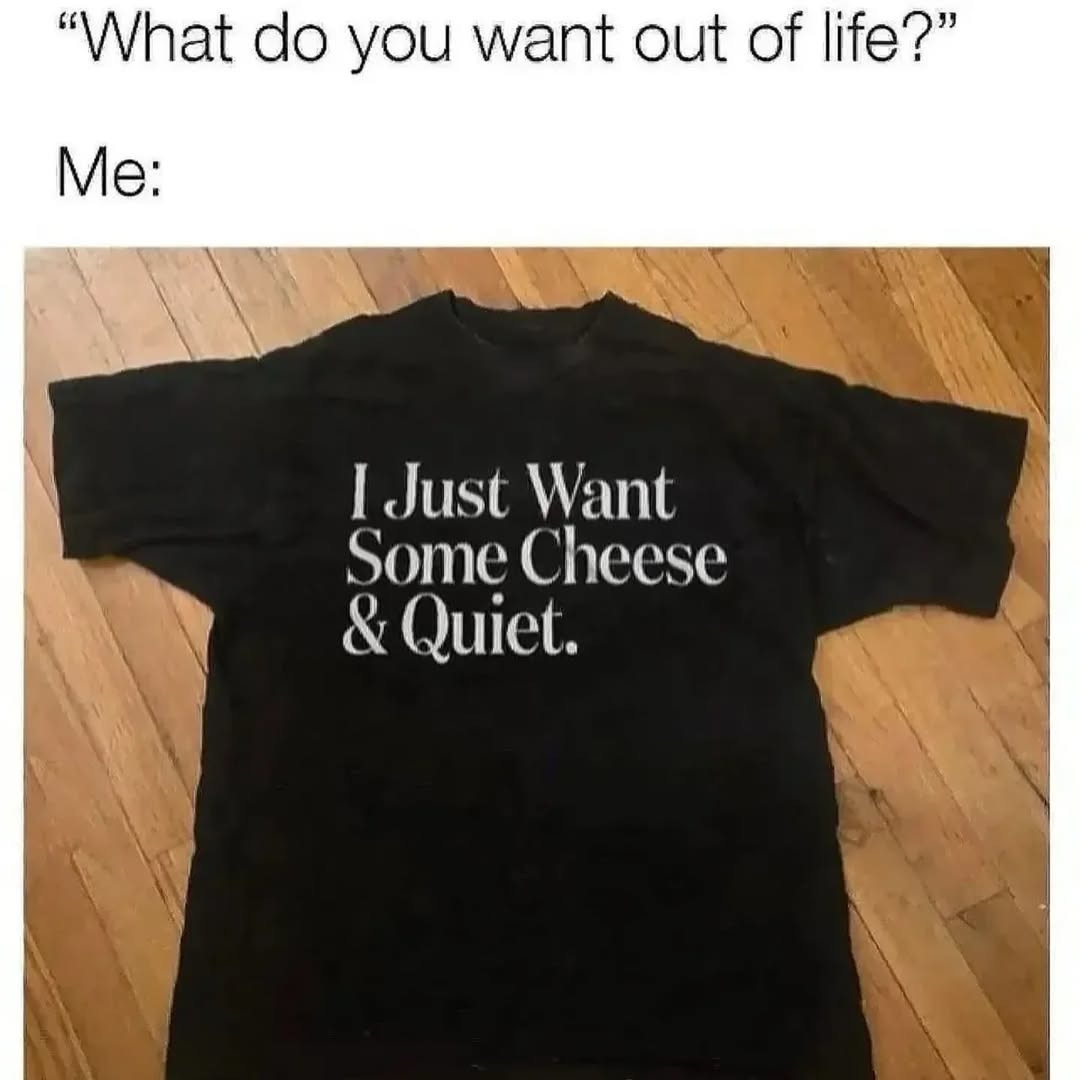 "What do you want out of life?" Me: I Just Want Some Cheese & Quiet.