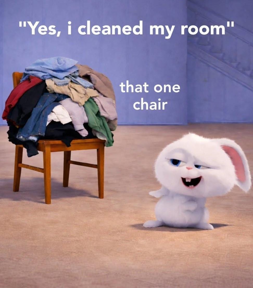"Yes, i cleaned my room" that one chair